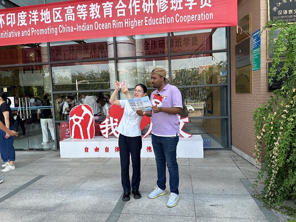 做好“国际交流”。时值浙江师范大学外国留学生报到日,金华分行辖属机构金义支行甄选英语口语较好的工作人员前往报到现场,针对留学生新生进行反假宣传并进行零钱包发放、小额人民币兑换。“中国的货币真精美!你们的讲解也很棒。”一位留学生在宣传活动后分享道,“我今天学会了5个识别真假币的知识点,我一定要把学到的知识告诉更多的朋友们。”